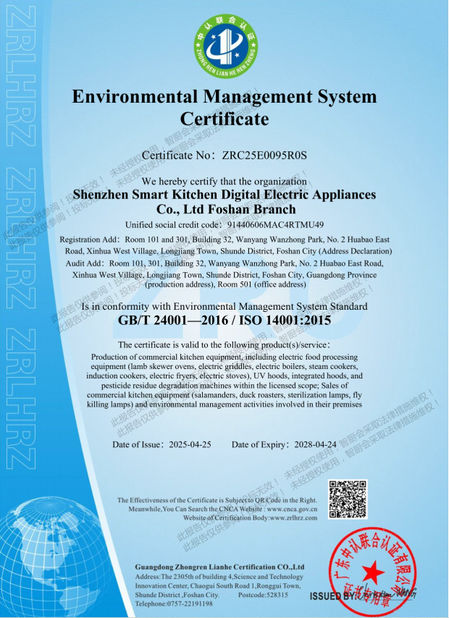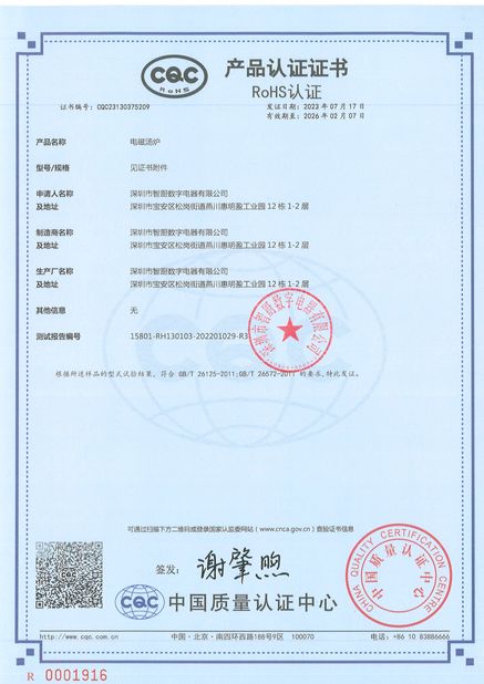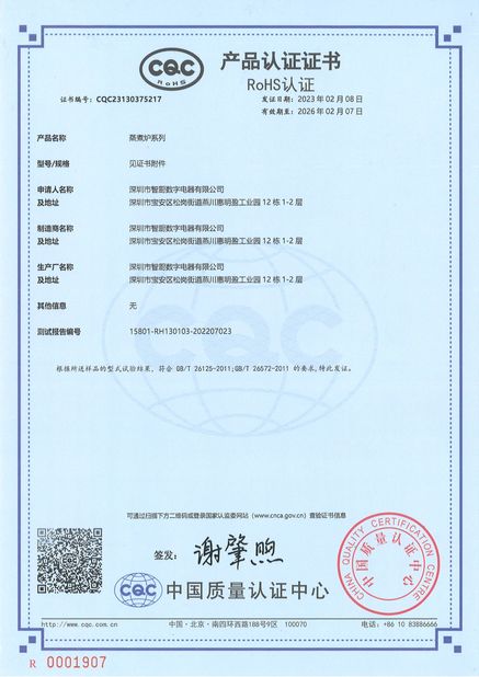 Die Produkte des Unternehmens haben die chinesische Energieeinsparungs-Produktzertifizierung, die Sicherheitszertifizierung für Lebensmittelkontaktprodukte, die RoHS-Zertifizierung, die Grüne Produktzertifizierung bestanden.